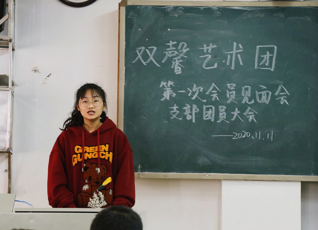 11月11日中午,304am永利集团官网双馨艺术团在格物楼209教室举行第一次会员见面会暨支部团员大会。双馨艺术团理事长兼团支书茹贞贞主持了此次会议。