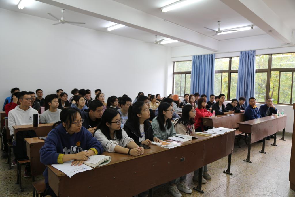 廖洁桥从学科发展历程、学院师资力量、科学研究方向、学科研究平台和团队以及近年来学院各类科研项目五个方面介绍了物理学科。在科研方面,他向同学们重点讲述了科研方法,他表示,作为科研新手,要注意科研方向的选取,要善于利用科研工具并整合相关学术资源,同时要学习好基础课程,为日后的深入研究打下基础。他强调,进入研究组后一定要与导师及研究组的成员多沟通,了解研究组的规定和研究风格,要时刻谨记讲究学术诚信,爱惜学术口碑这一原则。