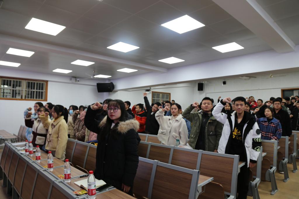 主持人带领所有到场人员进行志愿宣誓。白欣对此次宣讲会进行总结,并希望同学们在今后的学习生活中可以积极的参加志愿者活动。
