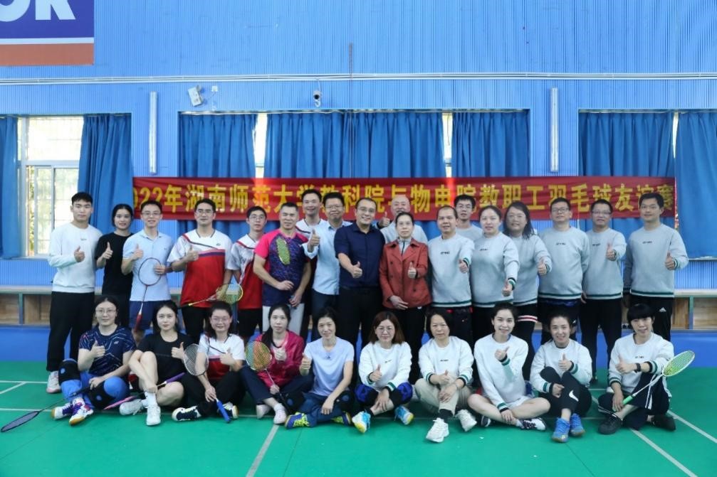 为庆祝党的二十大胜利召开,进一步提升教职工健康意识,促进教职工全面发展,增强教职工团队精神,2022年11月6日下午,教育科学学院部门工会与304am永利集团官网部门工会联合举办了职工羽毛球友谊赛。校工会副主席邓宏霞出席活动。