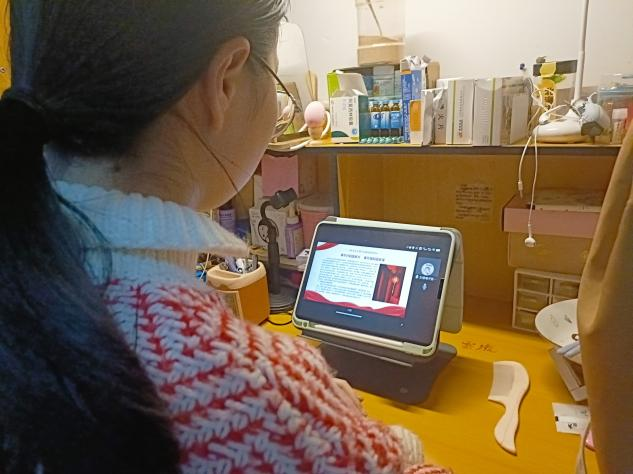 同学们认真观看会议
