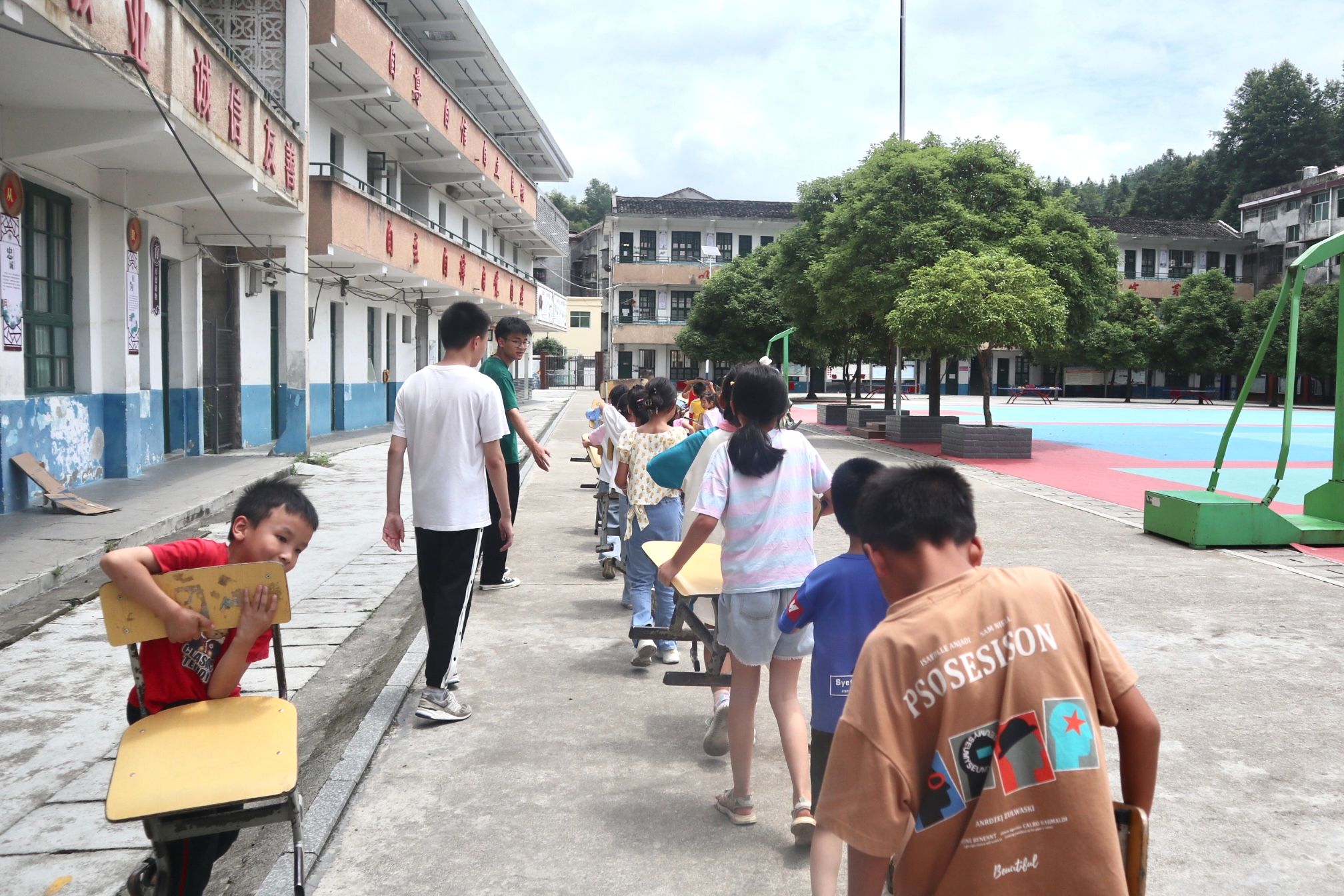 支教队员组织学生们前往授课教室