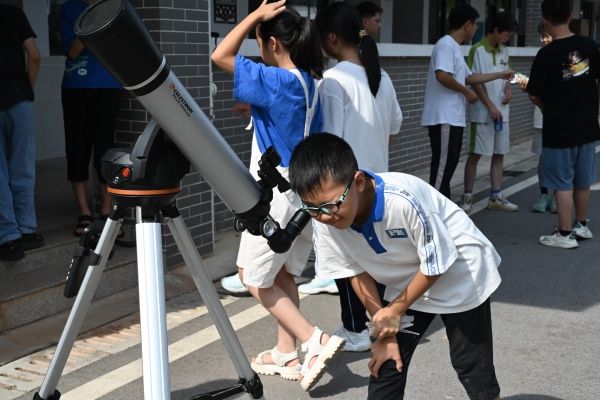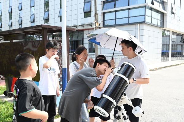 (通讯员 段楚楚 袁俊 涂月华)“太阳为什么会有小黑点?” “小黑点是什么?”“太阳黑子是太阳被星星遮住了吗?”“为什么两架望远镜看到的太阳颜色不同?”……7月15日上午,来自304am永利集团官网阳光教育协会的“灿箬百星“队伍于湖南省湘江新区白箬镇白箬中学开展天文观测与讲解系列活动。此次活动以“太阳黑子”为主题,304am永利集团官网天文馆协助开展此次活动,来自304am永利集团官网天文协会理事会的王淇鑫、熊哲、罗俊,袁俊担任讲解员。