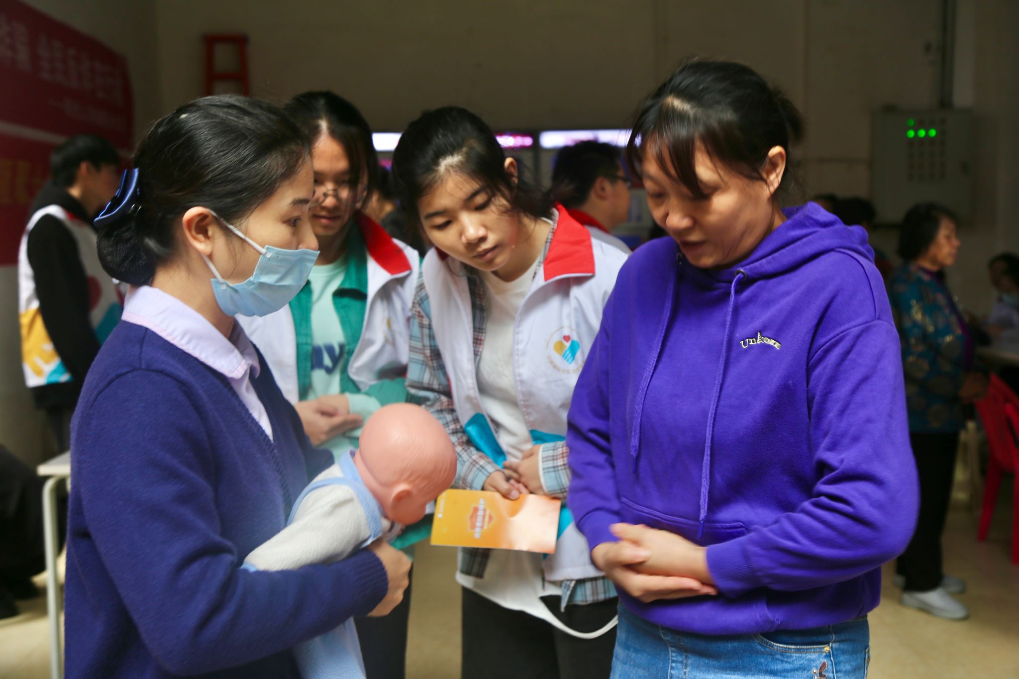 活动现场,志愿者们被分为三组,分别负责现场秩序维护、协助义诊和健康知识宣传等工作内容。为帮助参与者找到相关服务区域,确保活动的顺利进行,志愿者们提前设置好活动区域和导向标志,预先准备好所需的医疗设备、药品、宣传材料等。此外,志愿者还协助现场医护人员为社区居民提供急救知识教学,并采用互动问答、模拟演示和操作指导相结合的方式向居民们科普急救情况下应当采取的正确解决措施。他们为社区居民们分发宣传手册,并介绍了常见疾病的预防和治疗方法,日常饮食的营养搭配等
