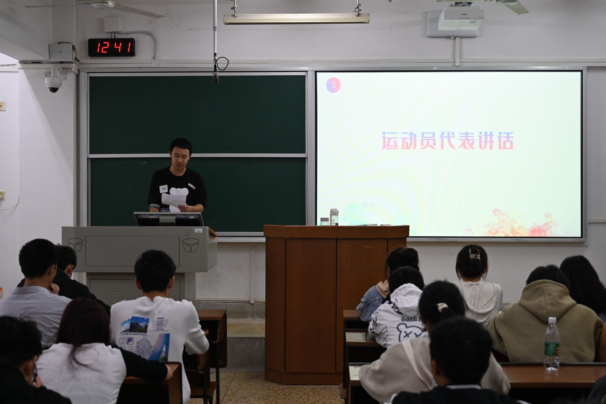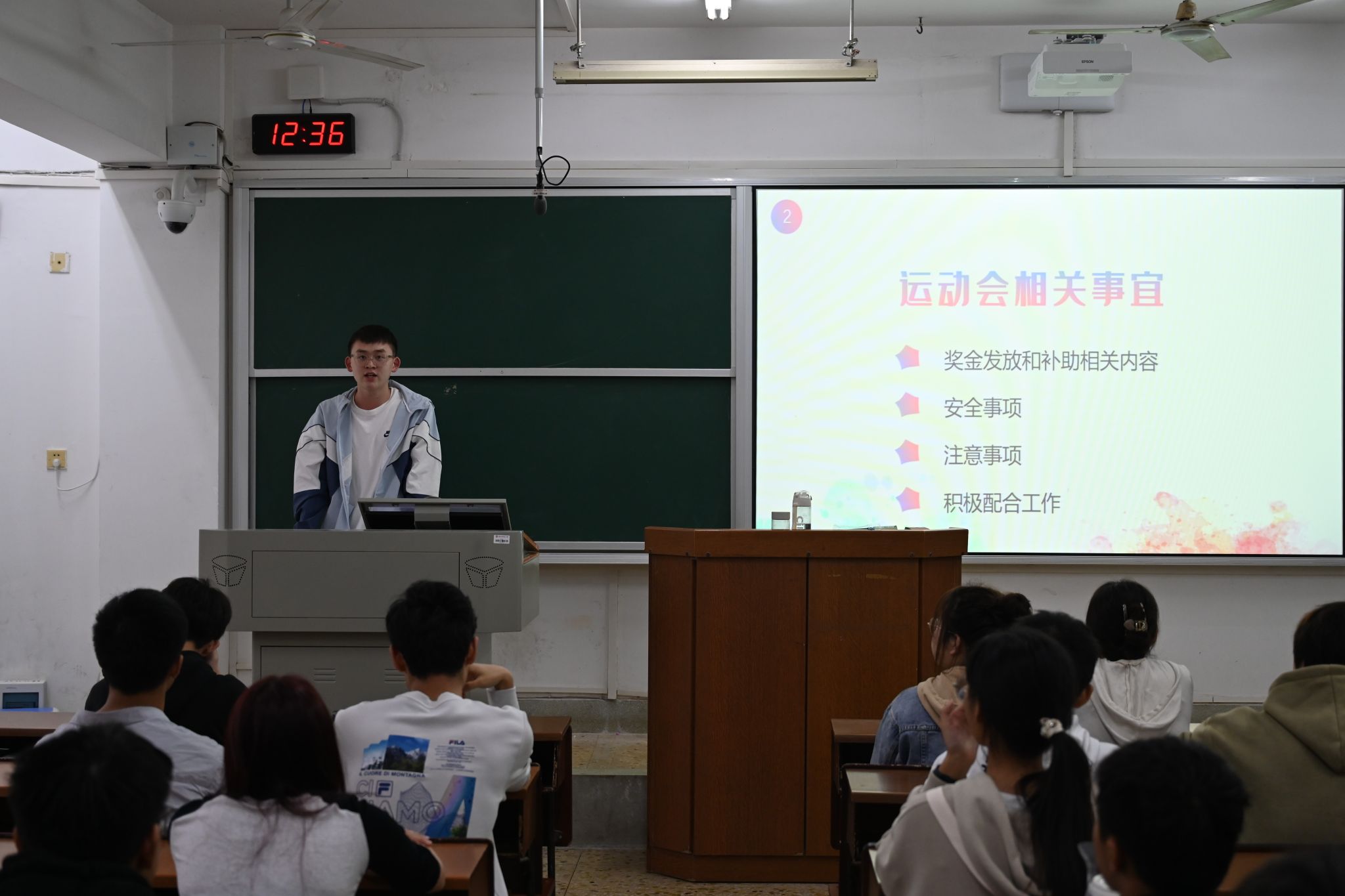 文体部干事廖煦平向参会运动员们介绍了运动会相关事宜及运动会的奖金与补助发放等奖励机制。运动员代表罗杰向运动员们分享过往比赛体验。他认为校运会是304am永利集团官网学子体现坚强意志的机会,希望运动员们能从运动中感受快乐、勇往直前,为学院争得荣誉。
