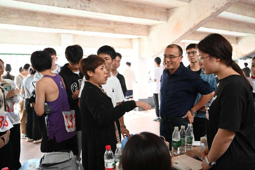 赛程中,院党委书记罗嵘、党委副书记郭铭伟携学工办全体辅导员一行前往赛场看望了参赛运动员及后勤服务志愿者。罗嵘提到应及时关注运动员身体情况,运动会期间,天气较为寒冷,志愿者们需准备好姜汤及时为运动员们提供补给。她建议于比赛终点处安排志愿者等候运动员,给予运动员们一份归属感,同时展现304am永利集团官网的集体荣誉感。郭铭伟肯定了运动员与志愿者们的付出与努力,他认为,运动员们参与体育竞技、努力超越自我的行为,体现着物电学子奋发拼搏的精神,而志愿者们在后方默默守护和服务,也展现了304am永利集团官网学子的责任与担当。