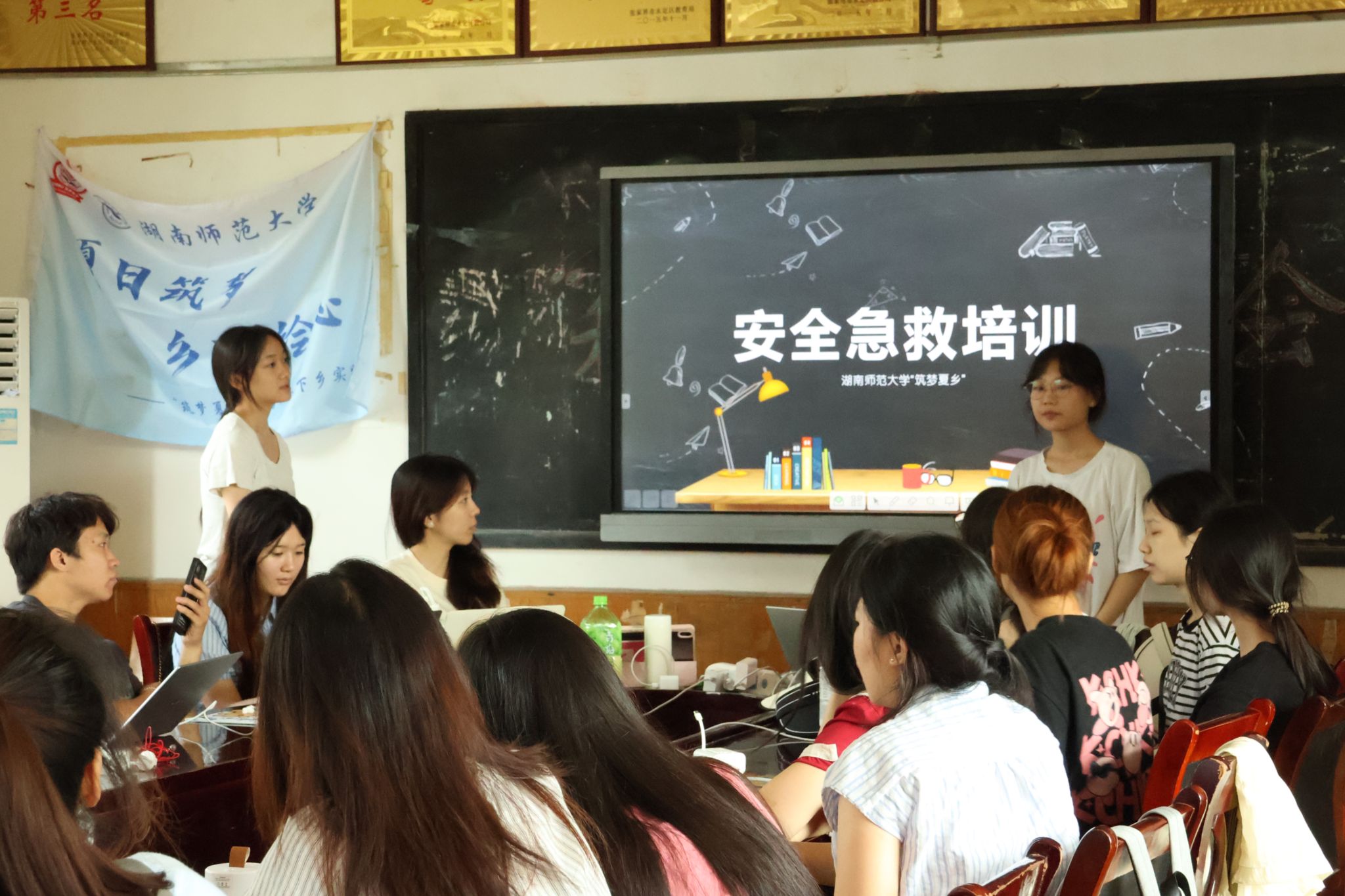 7月8日上午,“筑梦夏乡”志愿服务队开展安全培训会。培训会上,后勤组同学为大家演示常用的急救技能并介绍急救包内各物品的使用方式。队伍将持续重视安全工作,为实践活动安全保驾护航。
