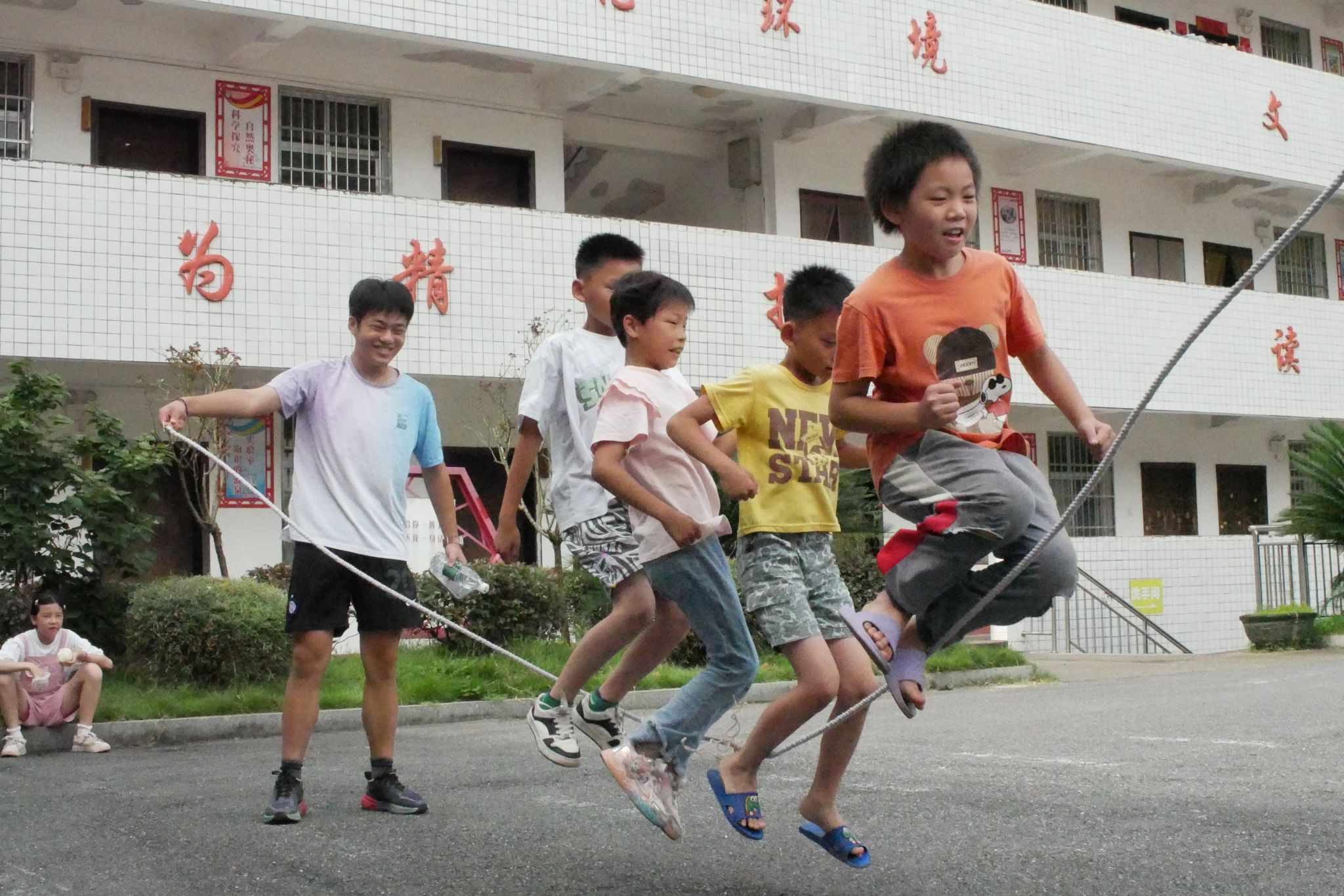 此次运动会分为个人项目与团体项目共计五项。在踢毽子项目中,孩子们赛出了自信与个人风采。在全员跳绳项目中,孩子们的运动技巧与身体灵活性得到了充分体现。在两人三足和双人背夹球项目中,孩子们两两结伴快速向终点冲刺,在相互的配合中增强彼此间的信任。在拔河比赛中,双方队员全力以赴为队伍争取胜利,体现了团结协作的力量。运动会过程中,实践团成员在维持现场秩序的同时,也积极为参赛的孩子们提供后勤保障,并作为各项目裁判保证比赛的公平公正。赛后,实践团成员为各项目优胜者或优胜团体颁发比赛奖品,并鼓励孩子们将运动精神带入平时的学习生活之中,在运动中感受快乐、收获健康。