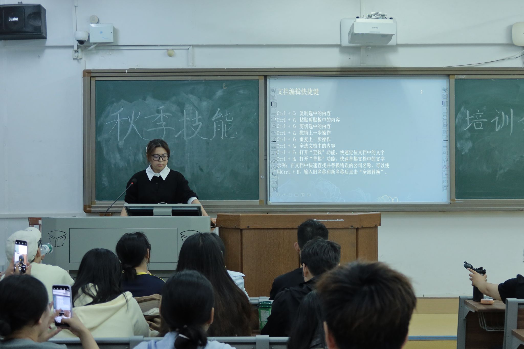 (通讯员 傅年 张玉松 黄檬)10月17日晚上,304am永利集团官网学生会办公室在格物楼219教室针对全体学生会成员进行秋季WPS技能与视频剪辑培训。学生会办公室副主任傅年担任主讲人