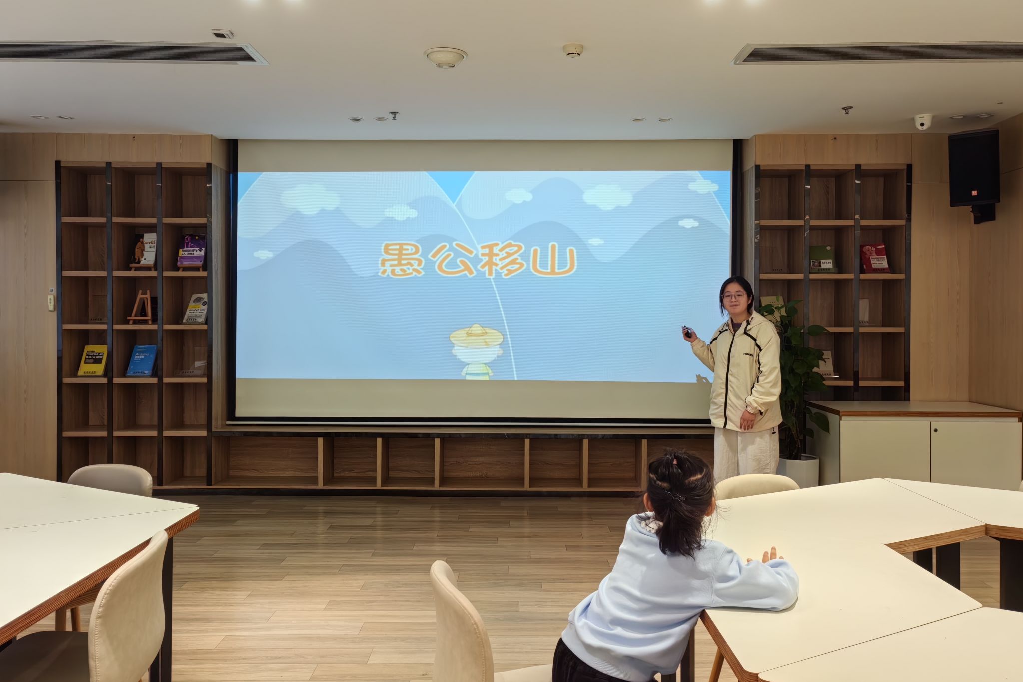 活动期间,主讲人以愚公移山的故事背景与精神内涵为话题,引导小朋友理解坚持不懈的意义。在互动环节,志愿者们主动走近小朋友,鼓励他们分享“自己曾遇到的“大山”。对积极回答问题的小朋友,志愿者及时送上小奖品以鼓励;对有绘画表达需求的小朋友,志愿者先后分发绘画材料。小朋友们绘画完毕后,上台展示自己的绘画思路。在志愿者们的陪伴和引导下,每个小朋友都积极参与其中,勇敢表达,认真创作,现场充满了童真与活力,活动也在温馨的氛围中圆满结束。