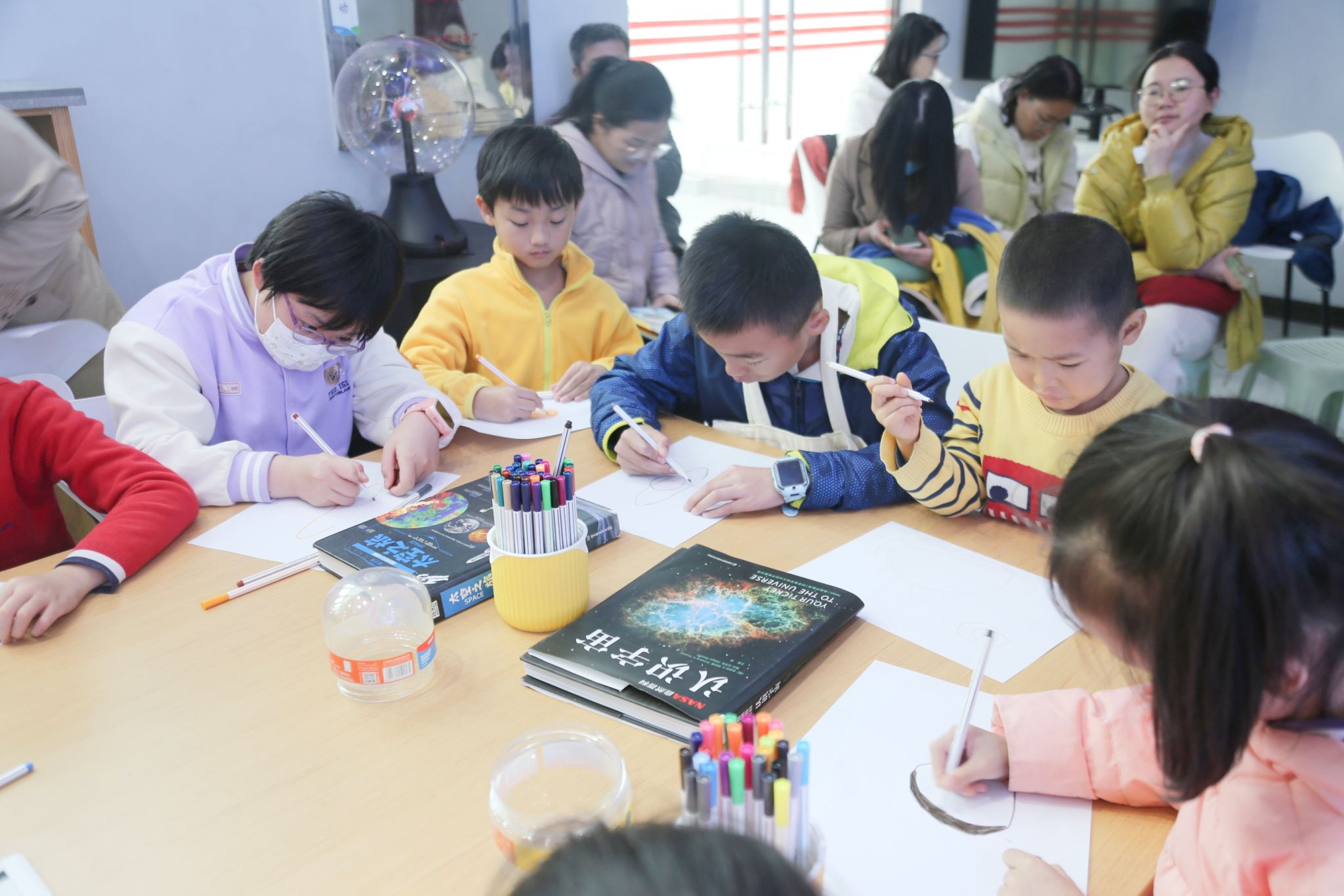 小朋友们一起绘画土星