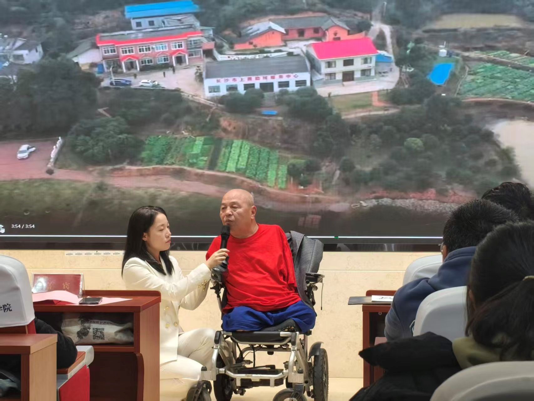 接下来是嘉宾分享环节,活动特邀“中国好人”谢向前与励志榜样周国民到场交流。谢向前讲述重度烧伤后创办农村非营利性助残机构,十余年间帮扶5000余名残障人士就业增收的故事;周国民分享高压电击致四肢截肢后,以顽强毅力实现生活自理、深耕书画创作的生命坚守,二人事迹诠释了“微光成炬”的力量,点燃了学子的公益热情。