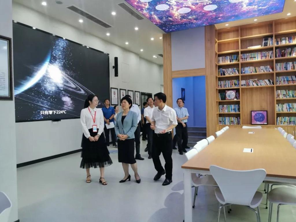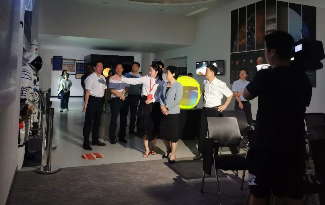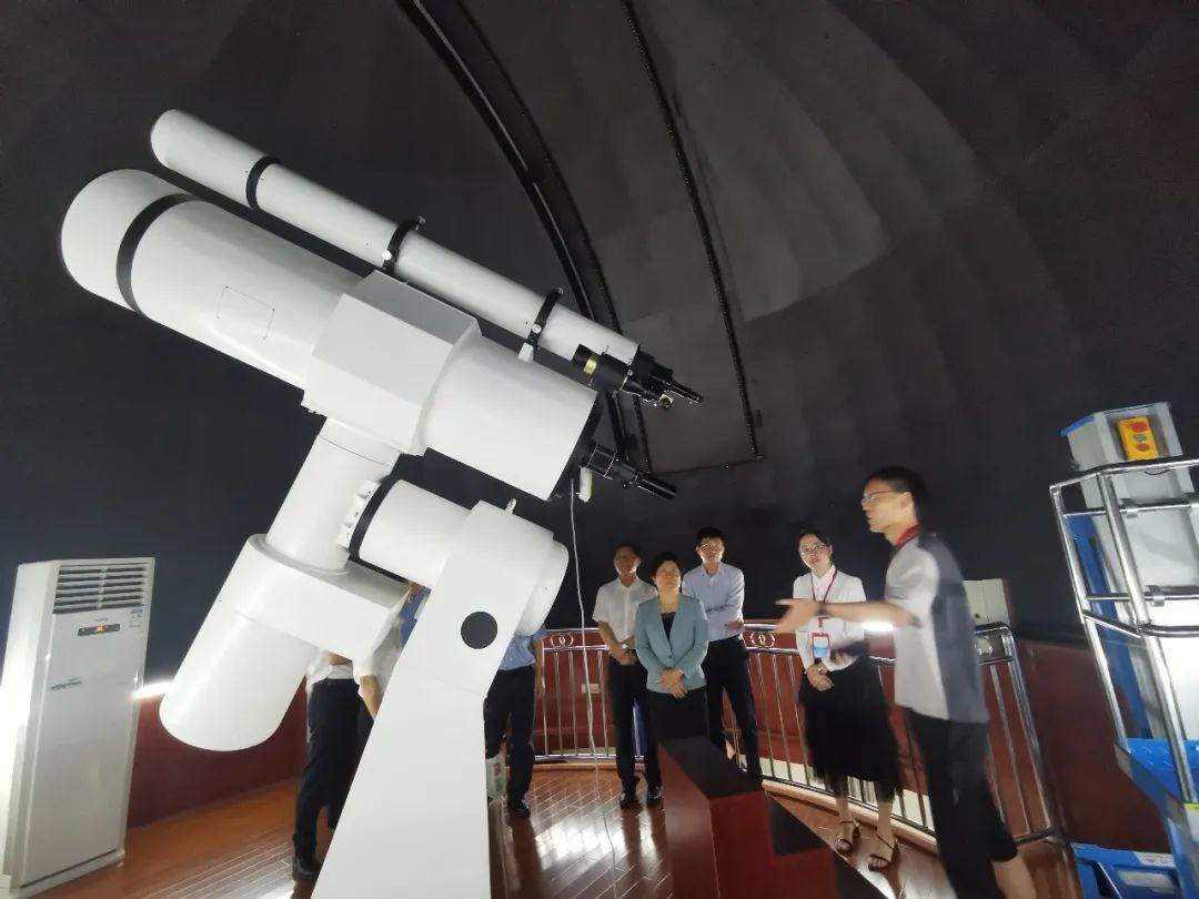 吴桂英副省长饶有兴趣地听了讲解,观看了航天展区、傅科摆、宇宙简史展区,太阳系展区和楼顶的40公分天文科普望远镜,并听取了我校党委书记蒋洪新关于我校天文与天体物理团队建设的汇报,以及天文馆讲解员章利关于天文馆建设和发展的介绍。吴桂英时而仔细聆听、时而浏览查看、时而驻足询问,对我馆的建设和发展理念表示赞许。