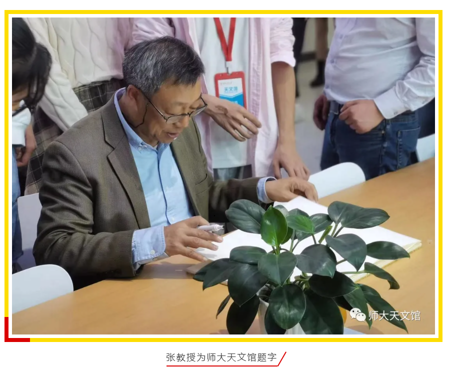 13日中午,在永利官网吴普训教授和低维量子结构与调控教育部重点实验室陈涛副主任的陪同下,张教授先是来到了位于我校中和楼6楼的师大天文馆参观指导。天文协会成员朱瑞熹向张教授介绍了馆内展厅相关天文科普内容和天文馆日常建设与管理。张教授对朱同学的讲解十分认可,并多次赞叹“不愧是天文馆金牌讲解员”。