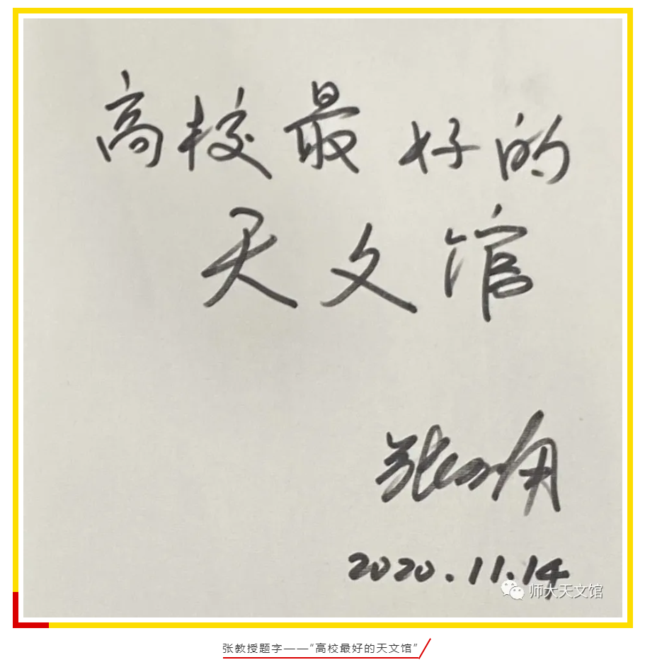 参观旅程完成后,张双南教授欣然地为天文馆题字“高校最好的天文馆”,并对天文馆下属的科普性学生组织——天文协会给予充分肯定。