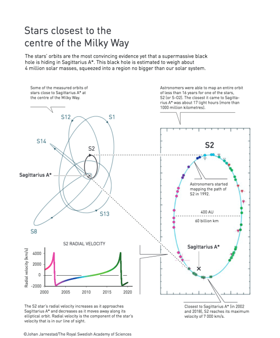 银河系中心附近恒星的运动轨道|nobelprize.org