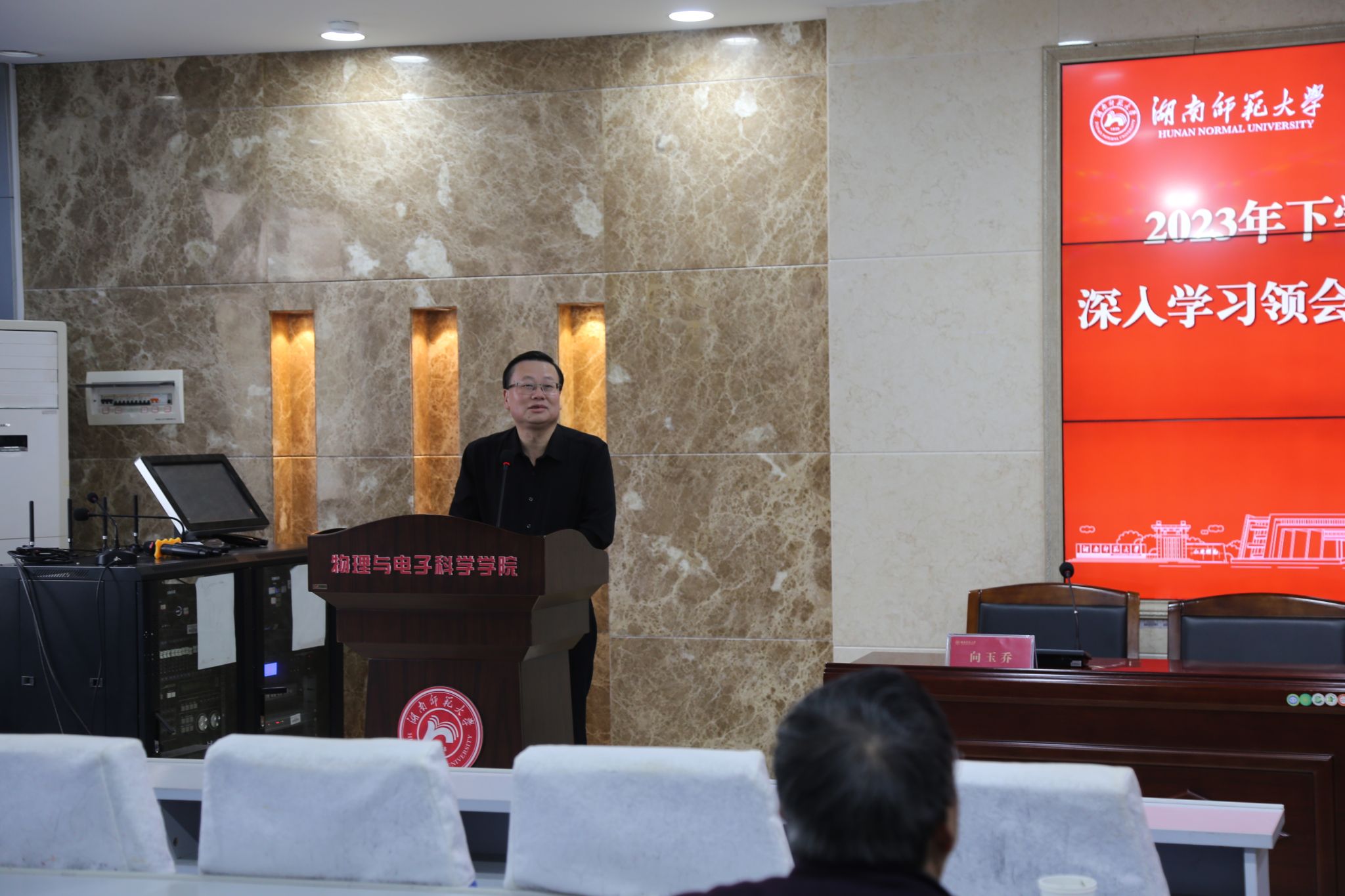 (通讯员黄丹罗瑞霞)11月30日下午,学院在格物楼509报告厅组织开展师生政治理论学习。我校道德文化研究院院长向玉乔教授应邀作《弘扬教育家精神》专题辅导报告,会议由院党委书记罗嵘主持。