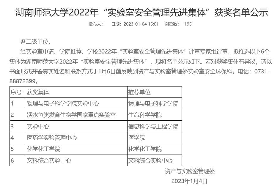 经实验室申请、学院推荐、学校2022年“实验室安全管理先进集体”评审专家组评审, 永利官网实验中心获得2022年度实验室安全管理先进集体,罗云荣老师获得2021-2022年度实验室工作优秀奖。
