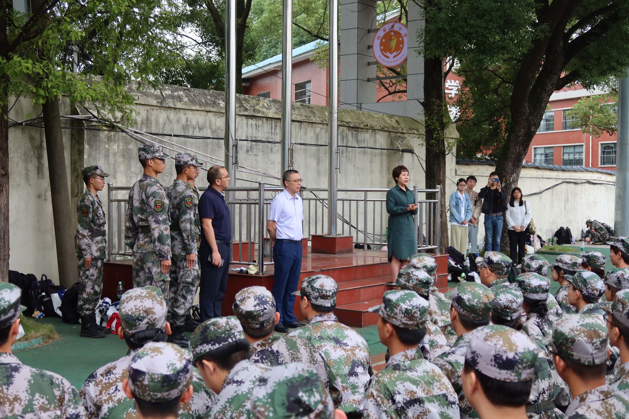 罗嵘书记也代表学院向带训教官的辛苦付出和认真教导表示诚挚感谢,并且叮嘱同学们要严格遵从教官的命令,严格遵守军训纪律,积极面对和解决军训中的困难与挫折,给军训画上一个圆满的句号。