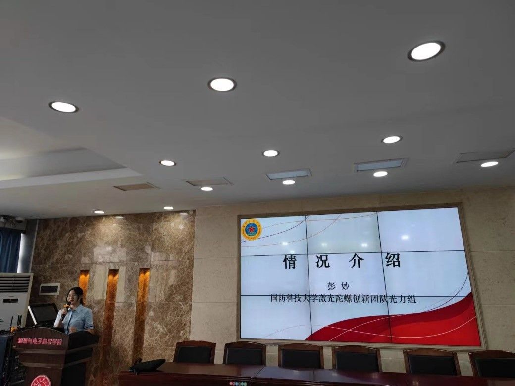 肖老师分别对国防科技大学2024年研究生招生政策进行了宣讲,分别从学校的基本情况,地方硕士招生,地方博士招生和相信息服务四个方面解读了招生政策,详细介绍了前沿交叉学科学院激光陀螺团队的科研工作情况,团队以军事需求为牵引,从基础前沿、关键技术到工程应用,开展全链条研究,取得了优异的科研成果。彭妙博士从学习、工作、生活三个角度生动的讲述了博士研究生的日常情况,期待更多学院学子能加入国防科大的科研团队。
