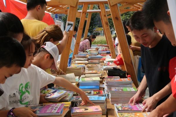 青工部负责人周志豪带领志愿者们提前到达荟聚中心,由社区负责人讲解活动流程和注意事项。志愿者们分工明确,分别负责宣传、义卖和收集捐赠图书并发放证明服务。在志愿者们的吆喝声中,不断有路过的居民前来购买图书,家长们也纷纷带着孩子将家中闲置的旧书进行捐赠。即使天气炎热,大家依旧热情不减,居民们的爱心也在书籍的捐赠与购买中得到了传递。据悉,图书义卖所得将全部捐赠给洋湖国际社区“悦悦公益”社区发展基金,给需要的人带去温暖与希望。