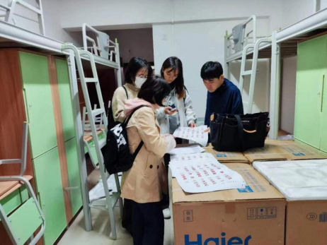 为确保迎新工作的顺利开展,学院领导高度重视,研究生办的老师们和志愿者们认真准备。10月6日上午,研会干事给新生电话连线提醒开学注意事项;10月7日上午,由科研办姚顺老师带领志愿者为学生贴床位标识,丈量宿舍床位情况,并了解新生住宿环境,熟悉迎新路线;10月7日下午,学院召开迎新部署工作会议,讨论迎新报到工作准备,关于未成功申请宿舍的同学的住宿安排,疫情防控应急预案等相关问题,确保新生到校后能够快速便捷地办理报到入学。