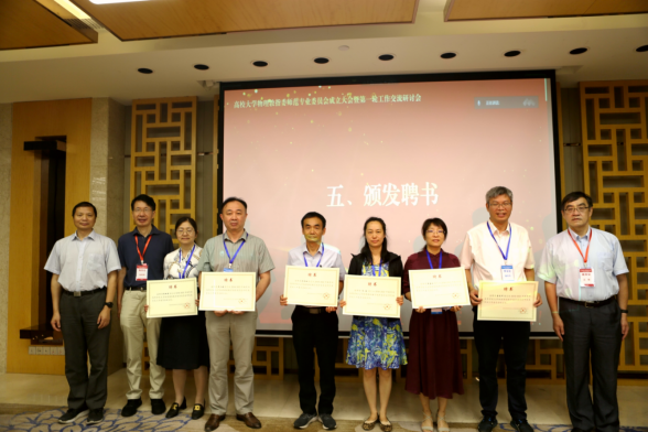 随后,教指委秘书长魏斌宣读了师范类专业委员会名单,教指委主任委员王青、副主任委员施建青为专业工作委员会主任、副主任、委员颁发聘书。