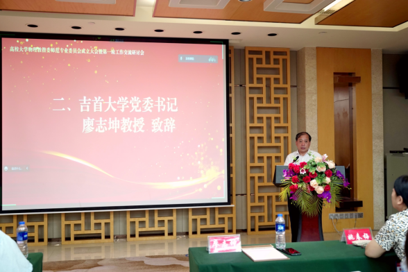 成立大会由教育部大学物理教指委秘书长魏斌主持。会议伊始,吉首大学党委书记廖志坤教授致欢迎辞,他代表承办方对各位专家同行的到来表示热烈欢迎,并介绍了吉首大学的沿革及发展概况、物理与机电工程学院的学科建设和人才培养情况,他高度评价了师范类专业工作委员会成立的意义和指导精神,他指出,成立大会在精准扶贫首倡之地——吉首召开,是对乡村教育、乡村振兴的有力支持和促动,有助于提升师范类教育教学质量和人才培养质量。