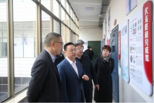 低维量子结构与调控教育部重点实验室主任匡乐满、学院全体领导班子成员、系主任及教师代表参加调研。