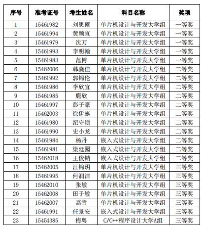 近日,蓝桥杯大赛组委会公布了第十五届蓝桥杯大赛个人赛省赛获奖名单,永利官网电子系邹孝、郑之伟、刘小年等老师积极组织学生参加赛事中的单片机设计与开发、嵌入式设计与开发和C/C++程序设计等多个科目,共获得湖南省一等奖5项、二等奖11项、三等奖7项,参赛人数和获奖数量都创历史新高。获得一等奖的5位同学将于2024年6月1日继续参加国家总决赛。