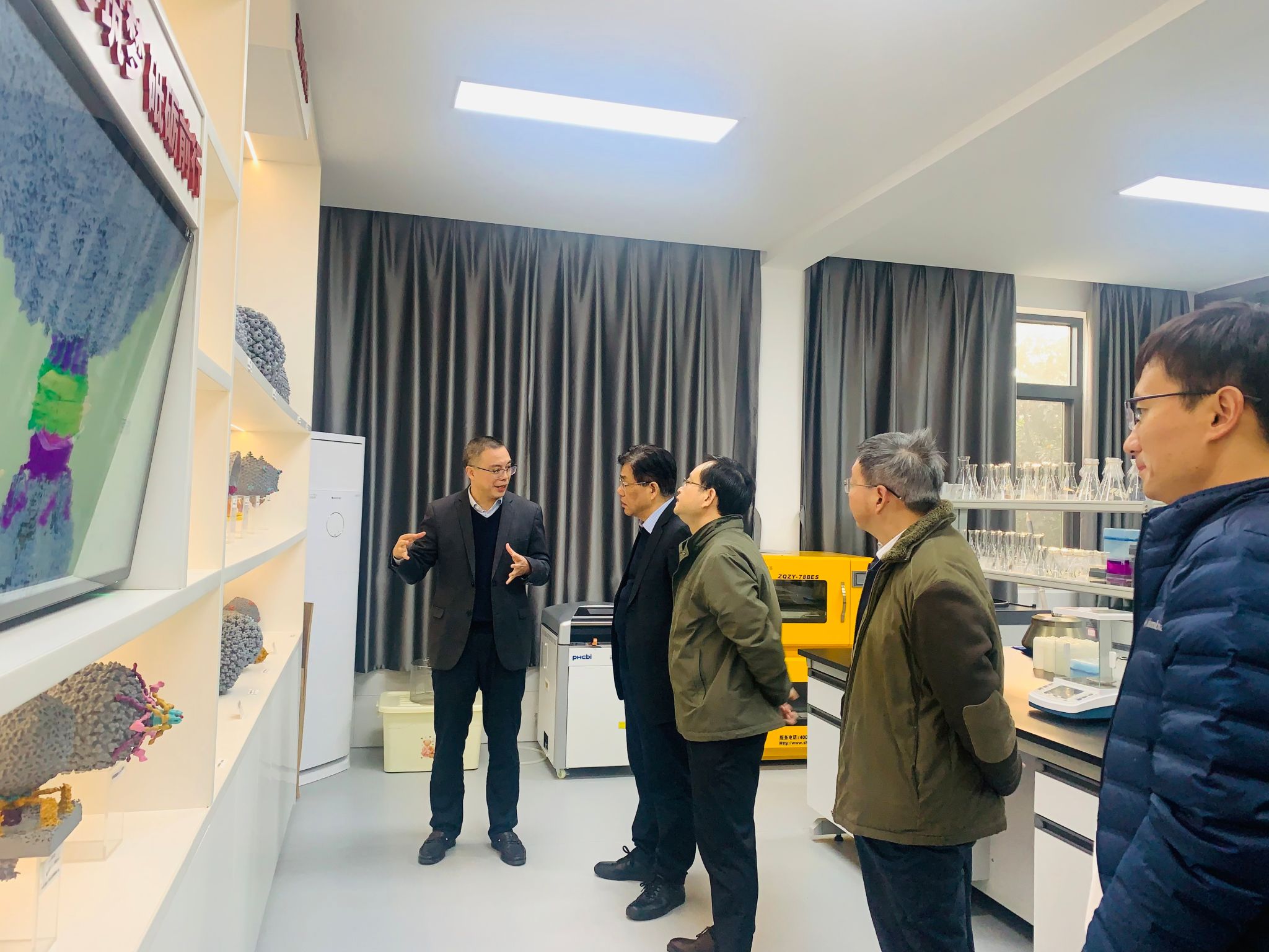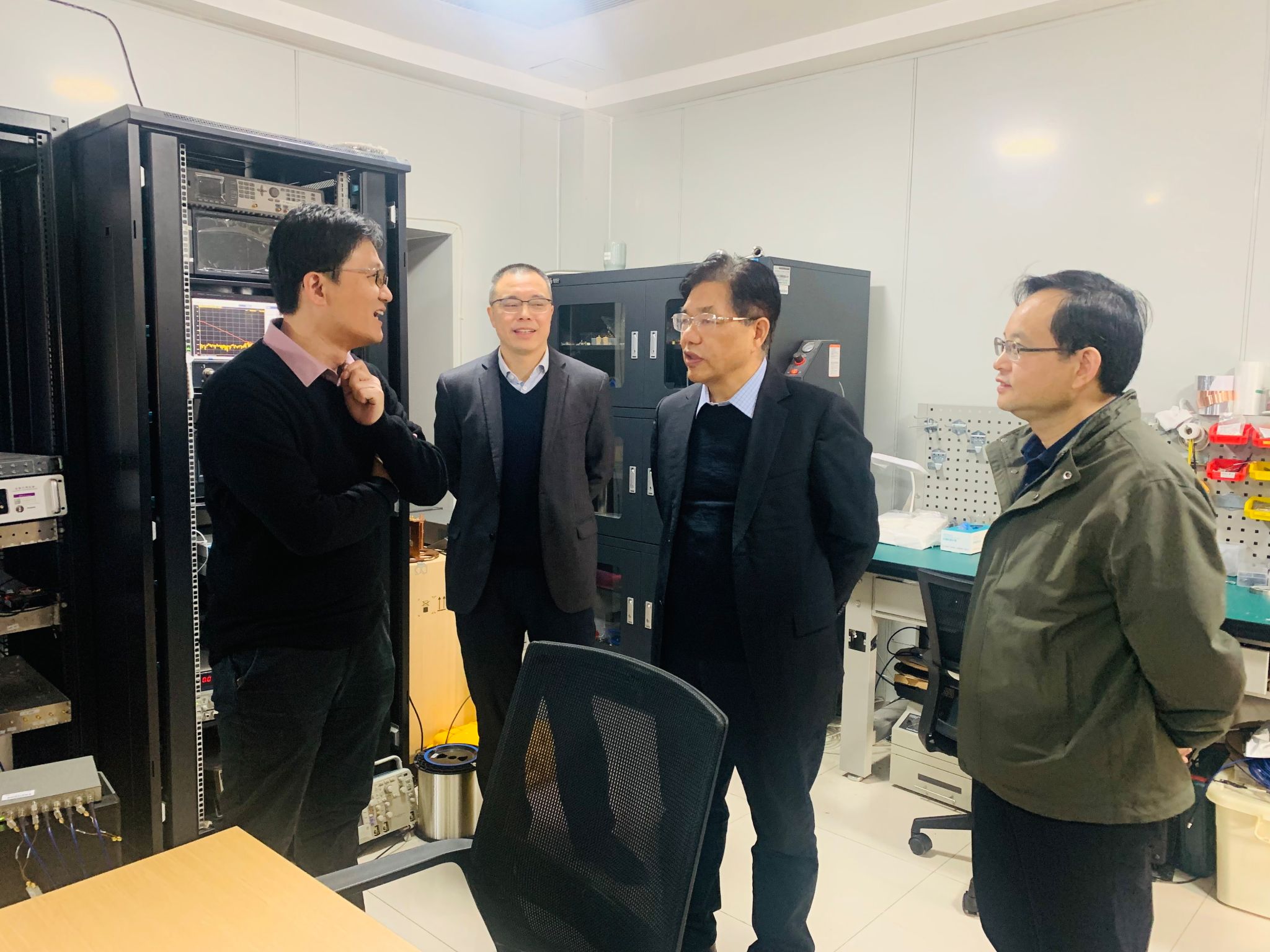 陈仙辉院士首先参观了软物质微结构实验室、超导量子计算实验室、微纳加工与测试实验室,并详细了解了实验室的研究进展。