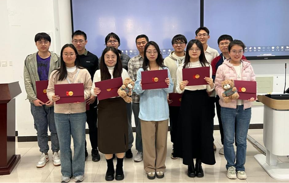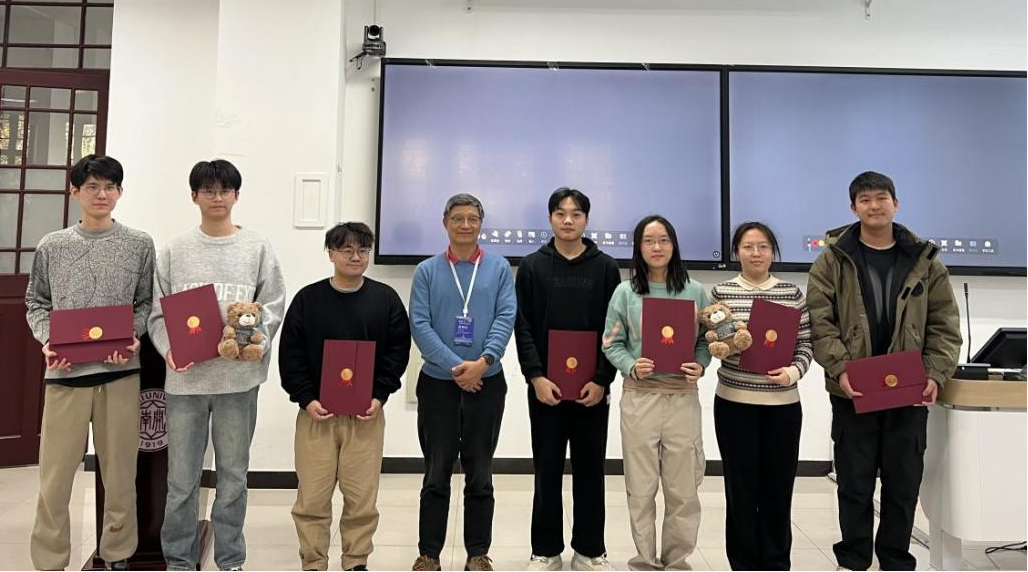 获报告比赛一等奖的学生(左二:刘文杰)与颁奖嘉宾张智庆教授(巴黎萨克雷大学)合影