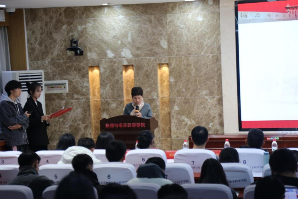 罗嵘作赛前致辞,她指出,周光召先生是科学界的楷模,其卓越的精神风貌与非凡的学术成就将激励同学们在前行的道路上不懈奋斗。她希望全体同学以此次演讲比赛为契机,深入学习科学家的优秀品质,将学习成果转化为实际行动,为推动我国科学技术与教育事业的发展贡献青春力量。