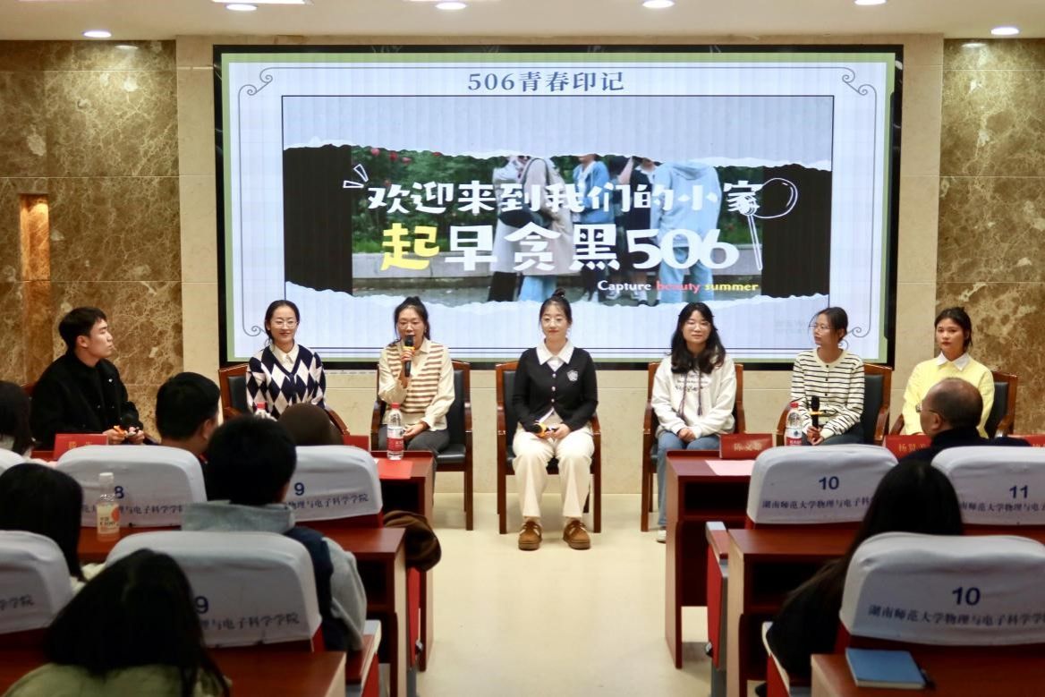 寝室交流环节以小视频形式导入,生动地向在场的同学们展示了2021级南院二栋506寝室6名优秀学子携手共进、共同奋斗的历程及她们所取得的骄人成就。2021级辅导员韩翔宇老师以互动访谈形式与6名学生进行了深入的交流,通过一系列珍贵照片的展示,她们深情地讲述了每一张照片背后的温馨故事。紧张而又充实的复习时光、无微不至的支持与鼓励,一张张照片不仅见证了她们之间深厚的友谊,也深刻揭示了寝室文化在推动学生个人成长方面所起到的积极作用。六位主讲人寄语学弟学妹:学习之路虽难,每一步努力都是成功基石。追梦路上,朋友、室友及同窗皆为坚实后盾,珍惜团队合作,享受奋斗时光,勇敢追梦方能不负青春。