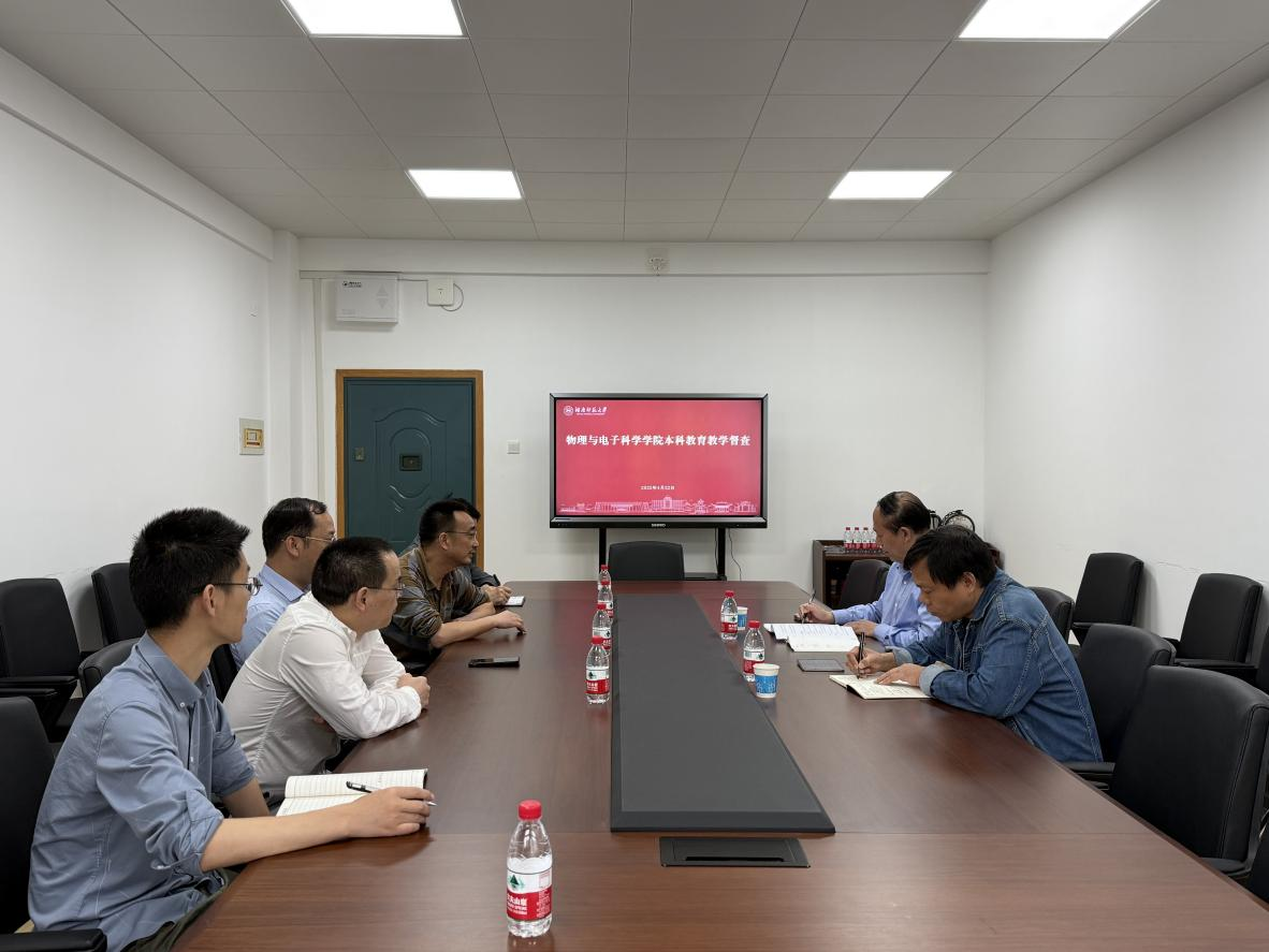 (通讯员:周心雨)2025年4月22日上午,304am永利集团官网第八届教学督导委员会赴304am永利集团官网开展本科教育教学常规督查工作。本次督导组由校教学督导委员会主任、原副校长黎大志和副主任委员兼第三组组长宋善炎带队,组员包括刘先锋、兰浩、张学军和钟坚成等四位委员。304am永利集团官网党委书记罗嵘、副院长潘启沅、物理系主任钟显辉、电子系主任蒋乐勇、应用物理学专业负责人周海青、教务办主任周丹、相关教师代表和工作人员参加了本次督查工作。