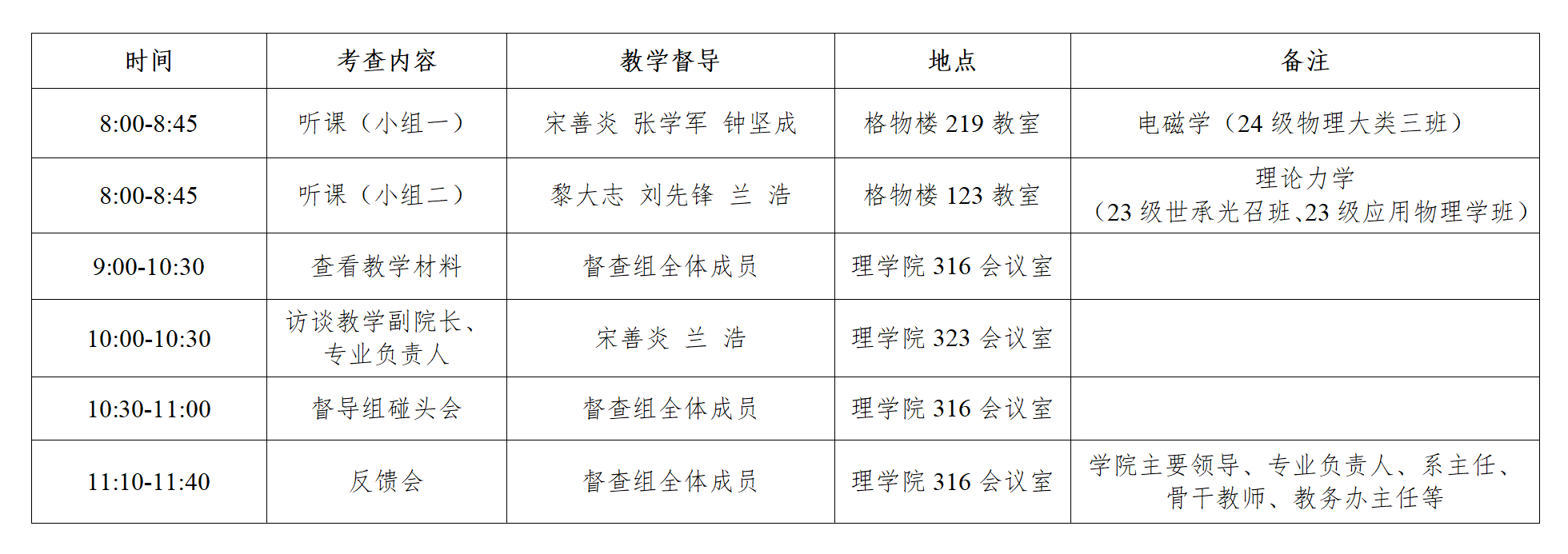 表 1 2025 年 4 月2 2日校督导赴304am永利集团官网开展本科教育教学督查工作方案