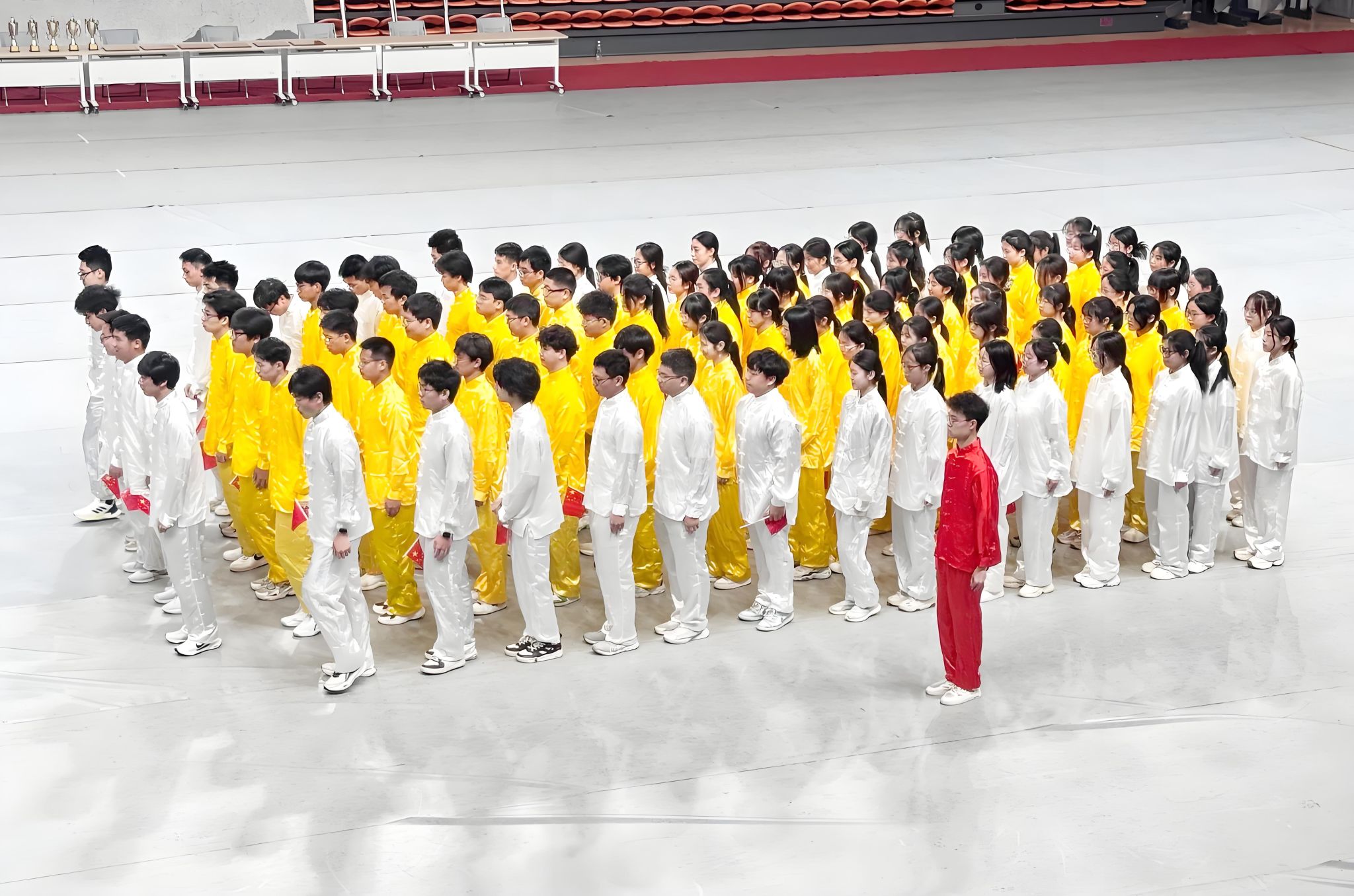 此次太极拳比赛分为团体赛和个人赛两个项目。在团体比赛项目中,代表队96名同学身着素色传统太极服入场。同学们伴随着悠扬的古乐,将呼吸与招式节奏完美契合,从“白鹤亮翅”的舒展飘逸,到“揽雀尾”的圆活连贯,一招一式之间尽显太极文化的深邃韵味。衣袂翻飞间,同学们将太极拳“松柔慢匀,开合有序”的特点完美地展现在整齐划一的动作之中。在个人比赛项目中,永利官网派出六名同学作为代表参加,其中刘昱辰,刘翱,王梓优,张玉松四名同学取得了个人赛三等奖的佳绩。