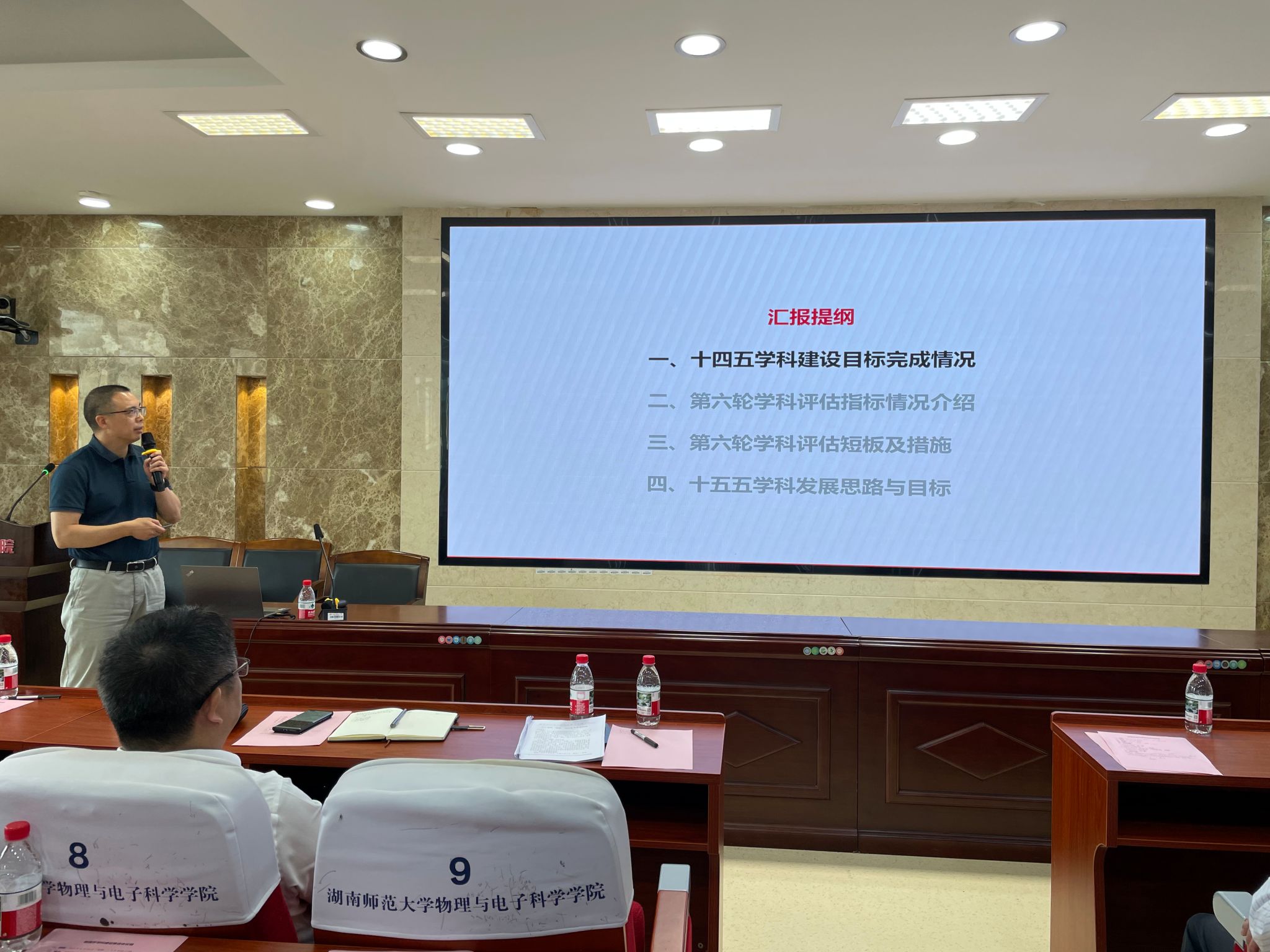 学科带头人匡乐满作总结发言,他感谢校领导和各职能部门领导长期以来对物理学学科建设工作的大力支持。他对学科最后阶段成果的查漏补短、材料准备的落实、亮点的总结提出了要求,并鼓励全院上下以最好的状态争取取得最好的成绩。