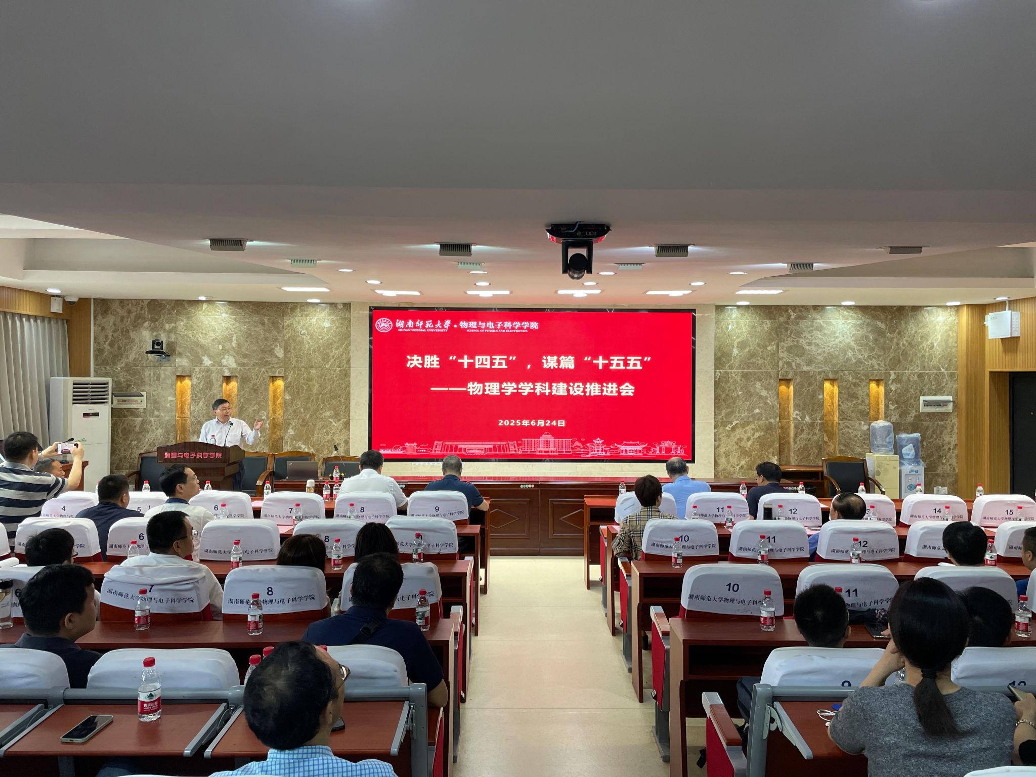 为深入推进学科建设,全面提升学院学科水平,6月24日上午,永利官网在格物楼509报告厅召开了主题为"决胜‘十四五’,谋篇‘十五五’"的学科建设推进会。会议由物理学学科带头人匡乐满教授主持。学校副校长杨震,发展规划与学科建设处、教务处、研究生院、科学技术处、财务处、资产与实验室管理处等职能部门领导,以及全院教师共同出席会议。