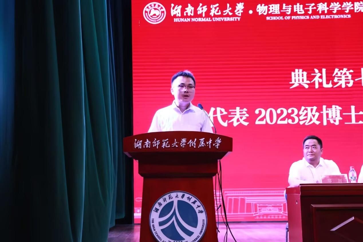 新生代表吕思洋对学院领导、老师及学长学姐的关心与支持表示感谢,并代表2025级全体新生郑重承诺:将尽快适应大学生活,保持团结互助,树立远大目标,努力成长为品学兼优的物电学子。
