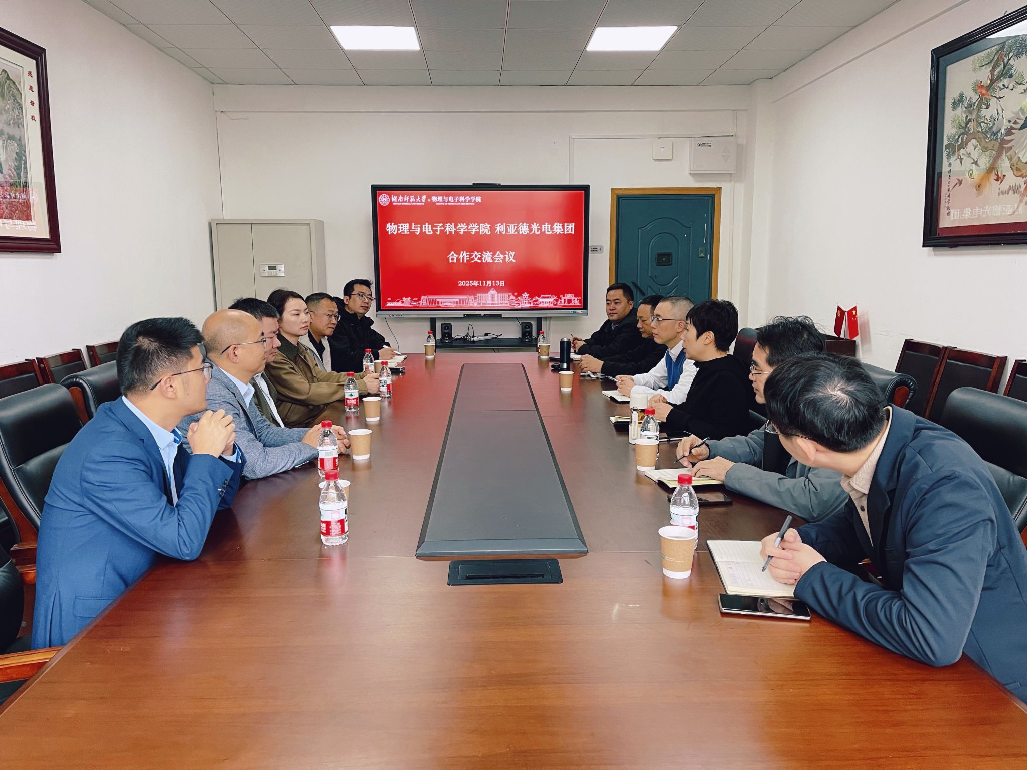 11月13日上午,永利官网与利亚德光电集团在格物楼会议室就产学研合作、人才培养及创新创业发展开展座谈交流。利亚德(湖南)光电有限公司总经理谢赓盛,利亚德学习发展中心执行院长魏子淇,永利官网院长刘红荣率全体在家院领导出席会议。会议由院党委书记罗嵘主持。