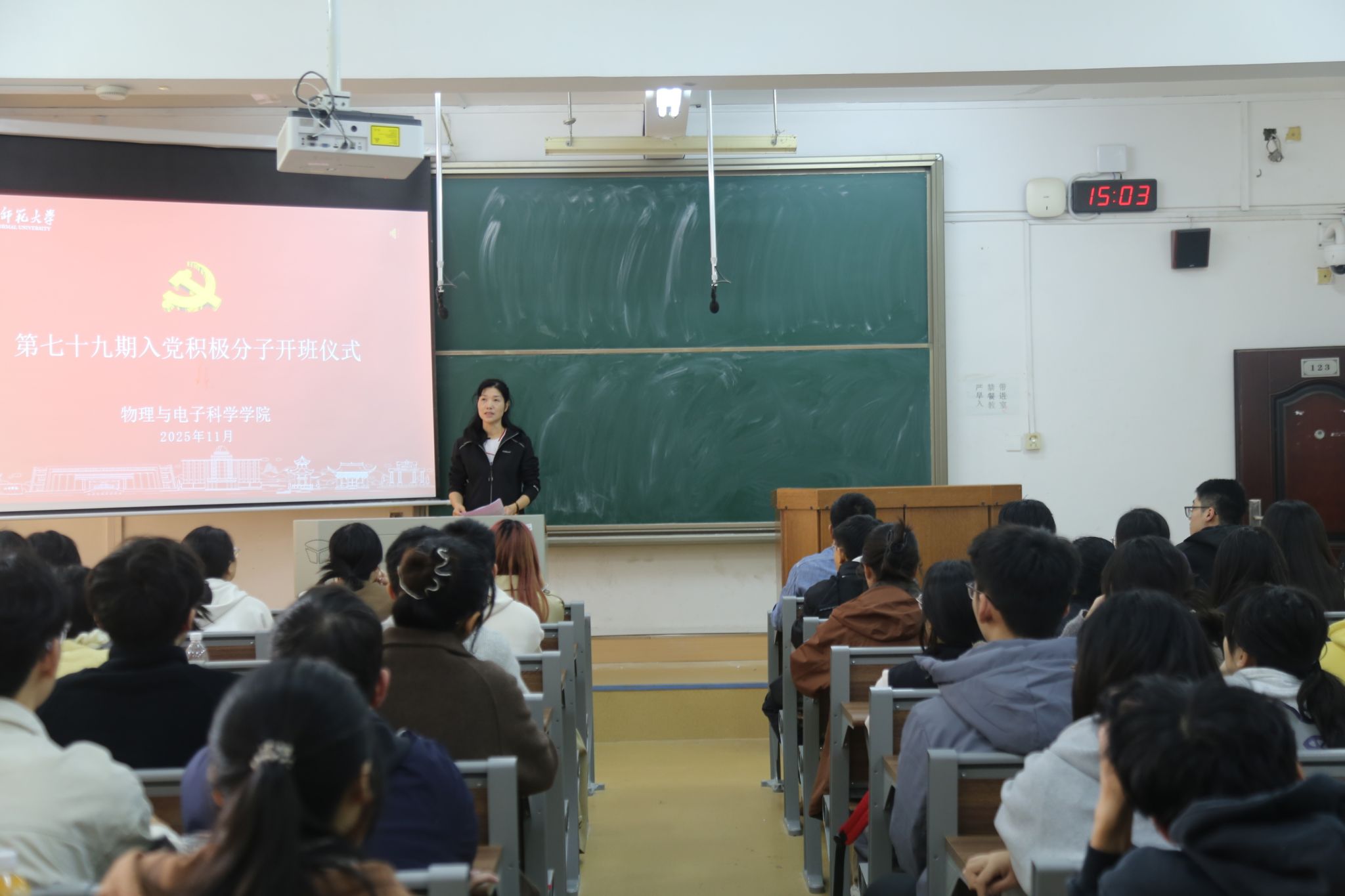 开班仪式开始前,何思怡阐明此次开班仪式旨在提升思想觉悟,深化对中国共产党的认识。吴浪波强调中国共产党的伟大历史意义,要求全体学员提高政治觉悟,在学习实践中锤炼党性修养,努力成长为合格的入党积极分子。