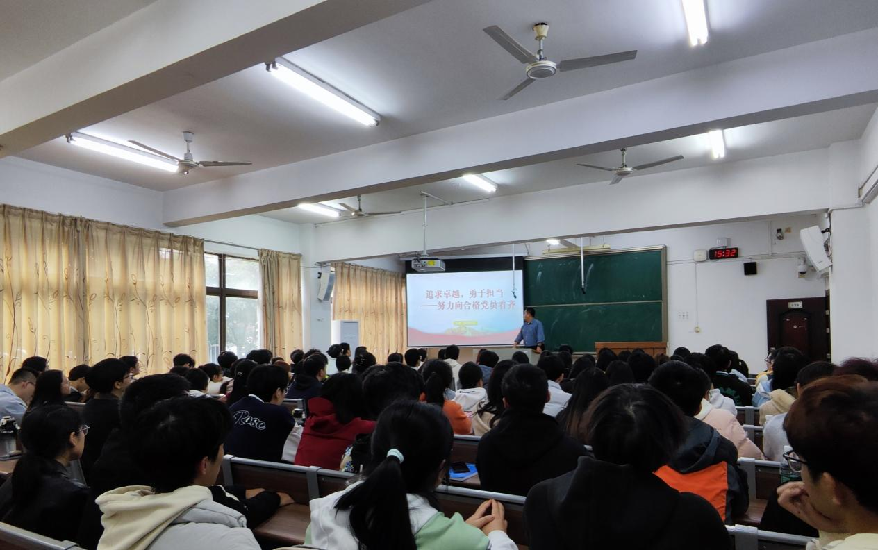 仪式后,郑智以“追求卓越,勇于担当——努力向合格党员看齐”为题讲授专题党课结合理论与实践,围绕“中华民族伟大复兴是刻在骨子里的夙愿;中国共产党是复兴路上的领航人;以实际行动争取早日入党;了解党员发展原则与程序”四个方面展开。