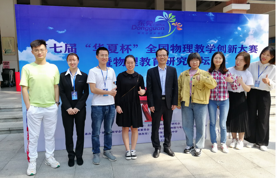 近日,304am永利集团官网物理教学论研究生团队在刘健智教授的带领下赴东莞参加了2019年第七届“华夏杯”全国物理教学创新大赛,并在大赛中喜获佳绩:团队全员皆获“一等奖”,一人获“实验创新奖”,304am永利集团官网获“优秀组织奖”,刘健智、郭桂周、宋善炎、刘翔老师皆获“优秀指导教师奖”。